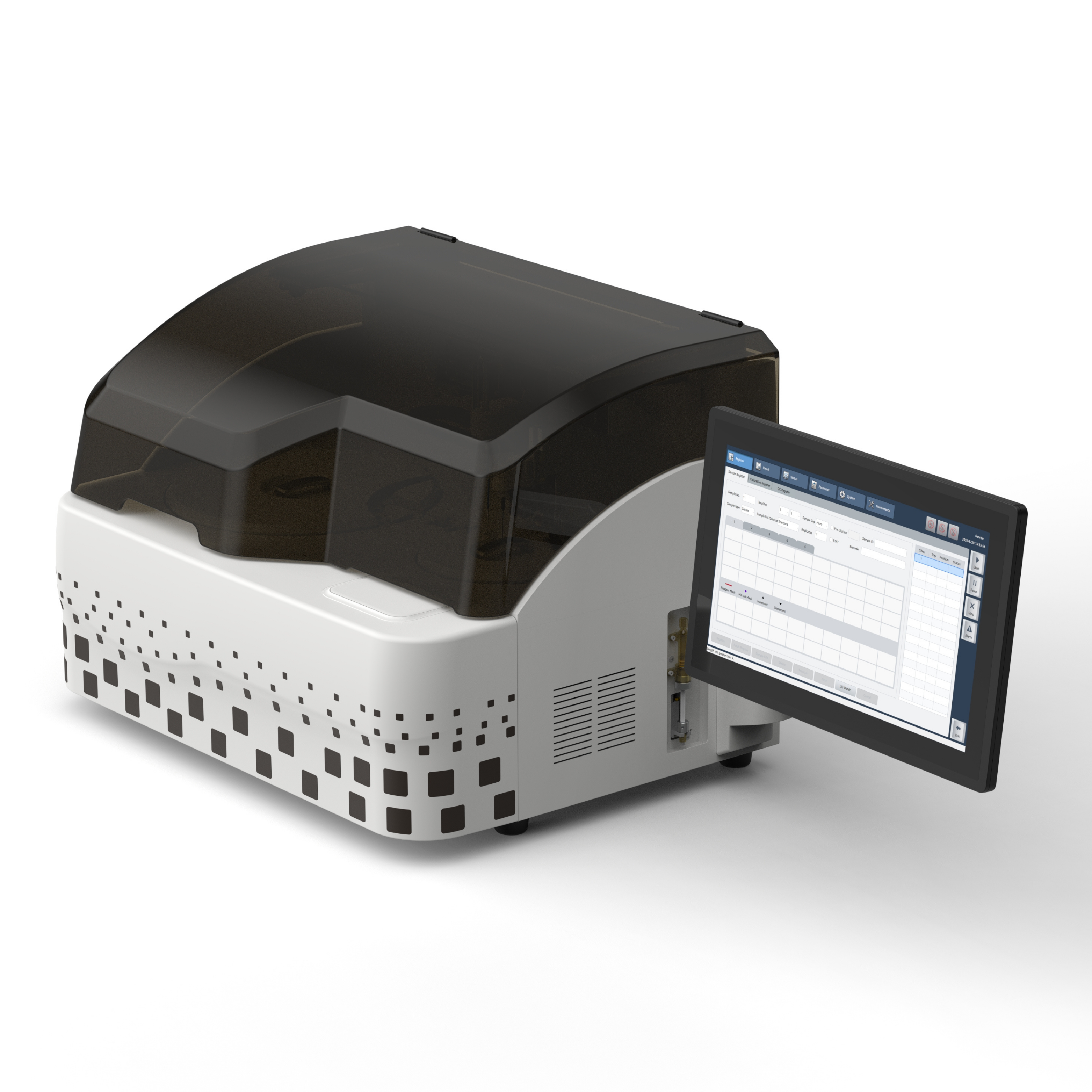 Constant 200 test/ hour with double reagent 80 reagent positions Automatic liquid level sensing, anti-collision